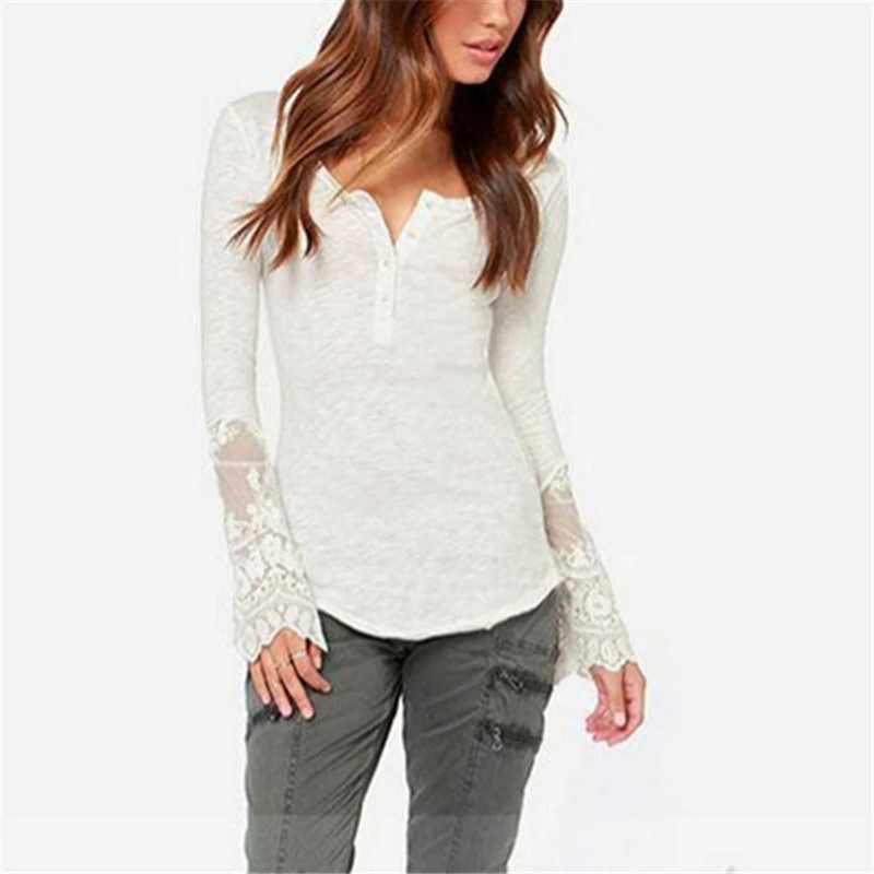 buy Women's Embroidery Crochet Knitted mesh lace stitching sleeve blouse back split shirt hollow FS0236