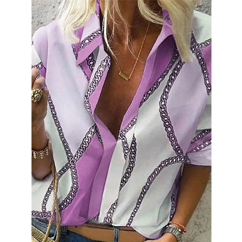 Greatest Lipswag 5XL Women Leisure Blouse Tops Autumn Chain Print Work office Blouse Shirt Ladies Stylish Lo