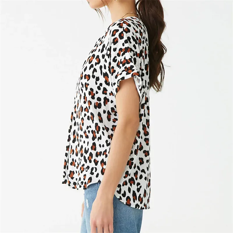 Finest Chiffon Blouse Summer Women Batwing Short Sleeve Blouse Leopard Print Casual Loose Tops Tunic Plus