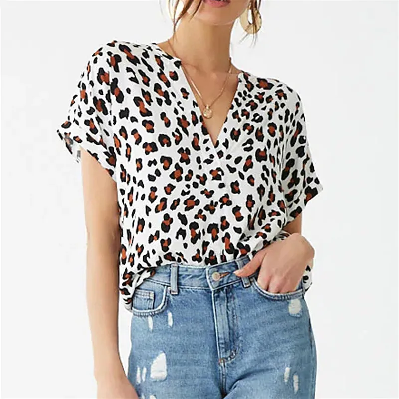 Blouse Women 2020 Leopard Print Chiffon Blouse Shirt Summer Flare Short Sleeve Casual Tops O Neck Ladies Office Shirts Blusas,Chiffon Blouse Summer Short Sleeve Floral Print Tops Casual Loose Tops Turn Down Collar Lady Office Shirt Plus Size Blusas Mujer, Chiffon Blouse Summer Short Sleeve Floral Print Tops Casual Loose Tops Turn Down Collar Lady Office Shirt Plus Size Blusas Mujer