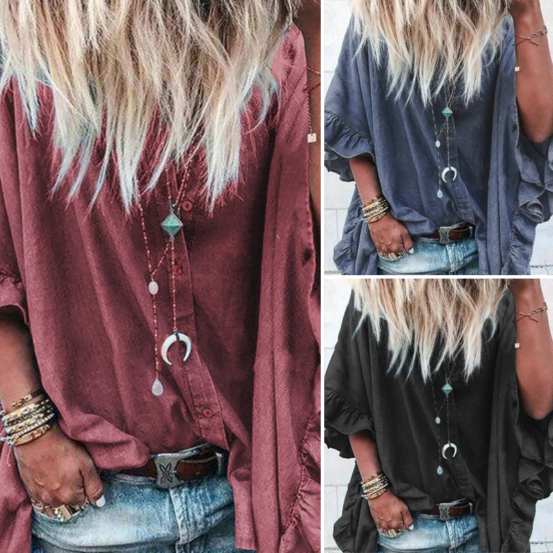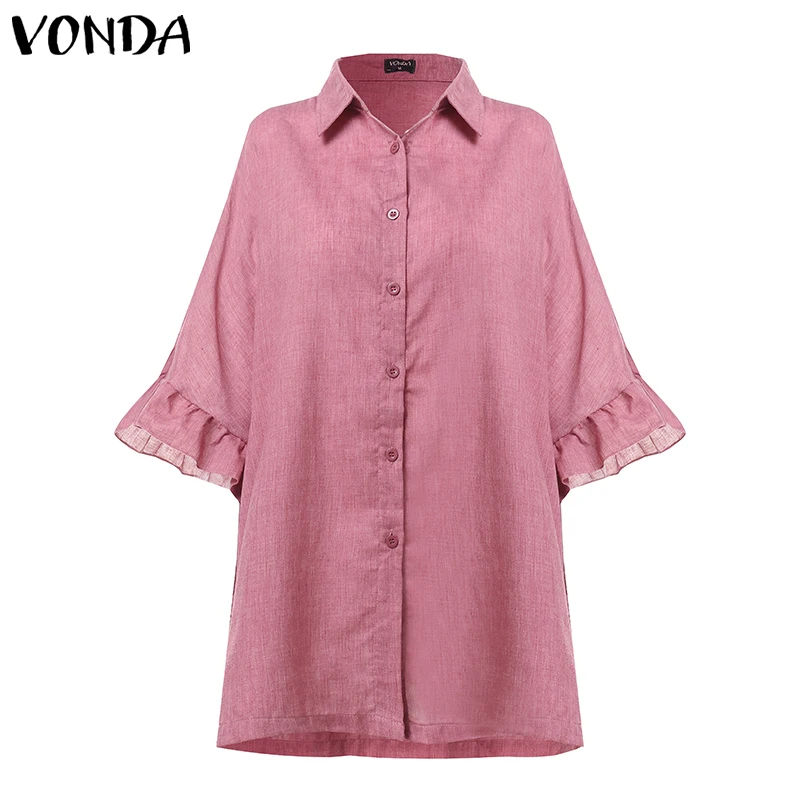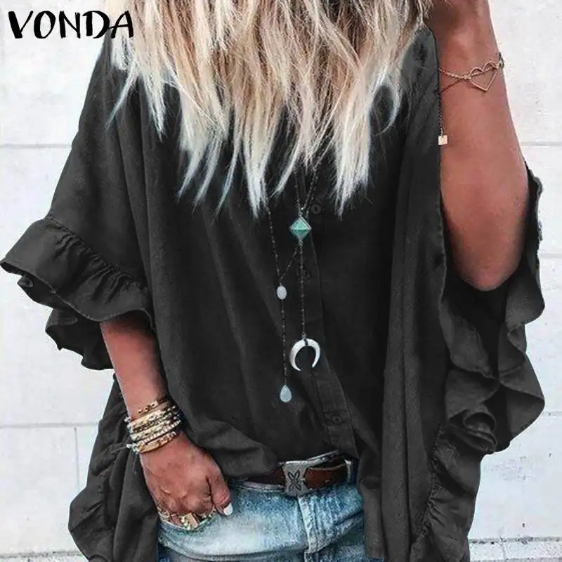 Finest VONDA Blouse Women 2019 Casual Loose Lapel Neck Sleeve Ruffle Blouse Sexy Office Ladies Shirts Tuni