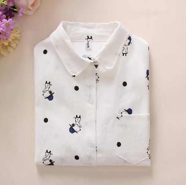 incredible 2019 Spring New Women Long Sleeve High Quality Cotton Shirt Cartoon Dog Print Casual Blouse Shirts