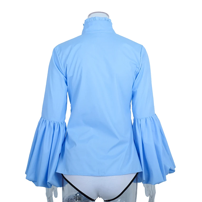 incredible Autumn Turtleneck Blouse Women Button Down Shirts Wide Lantern Sleeve Blue Tops Fall Office Lady Fa