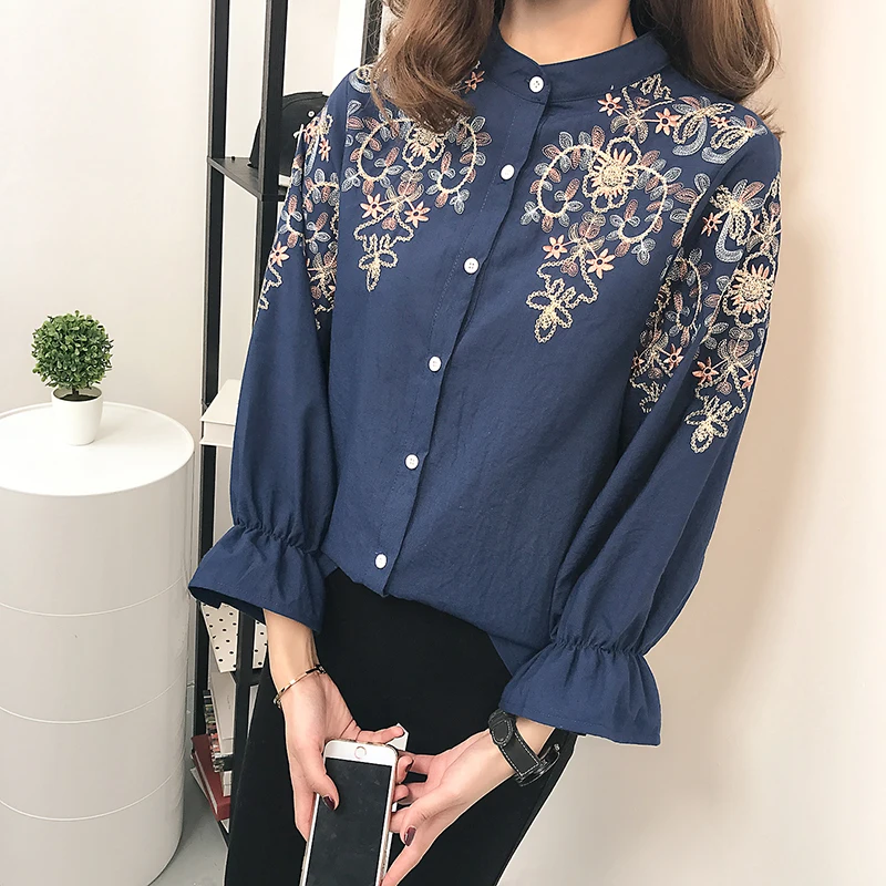 remarkable Blouse Shirt Female Cotton 2019 Women Blouses Embroidery Shirts Shoulder Long Sleeve Casual Tops Sh