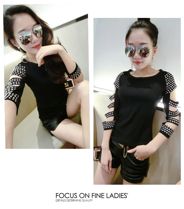 amazing Sexy Hollow Out Sleeve Diamonds Tshirt 2019 New Spring Summer Women O-Neck Half Sleeve Top Shirt Cl