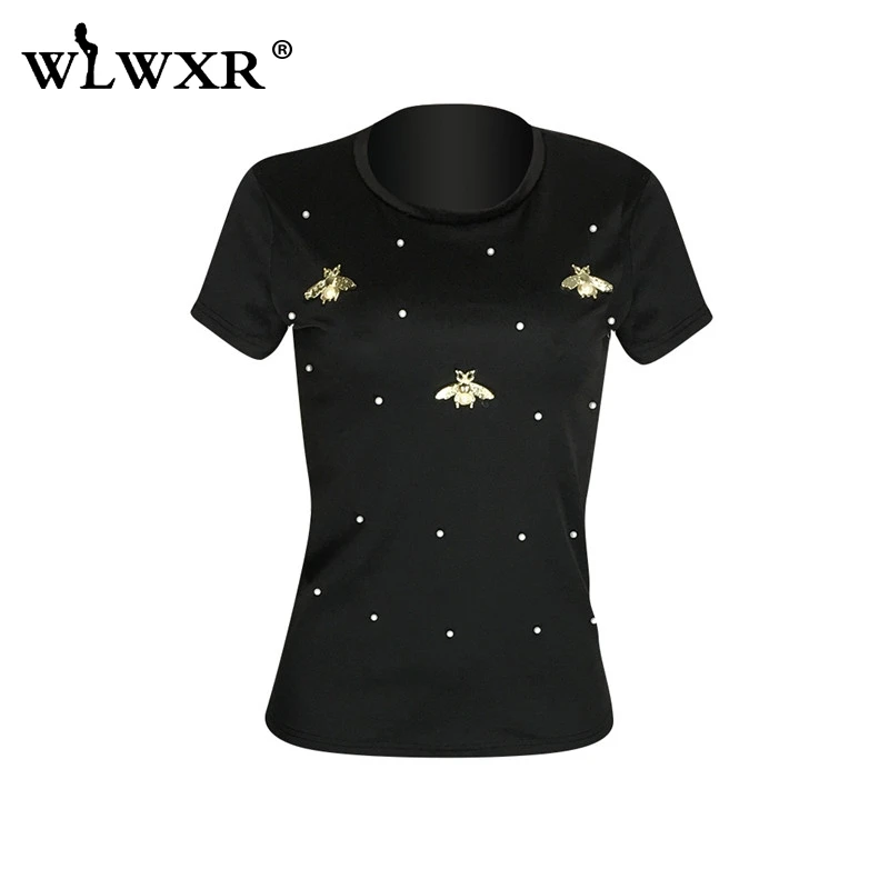 astounding WLWXR Plus Size Women Short Sleeve Pearl Beading Tshirt Ladies Tee Tops Summer Solid Weekend Casual