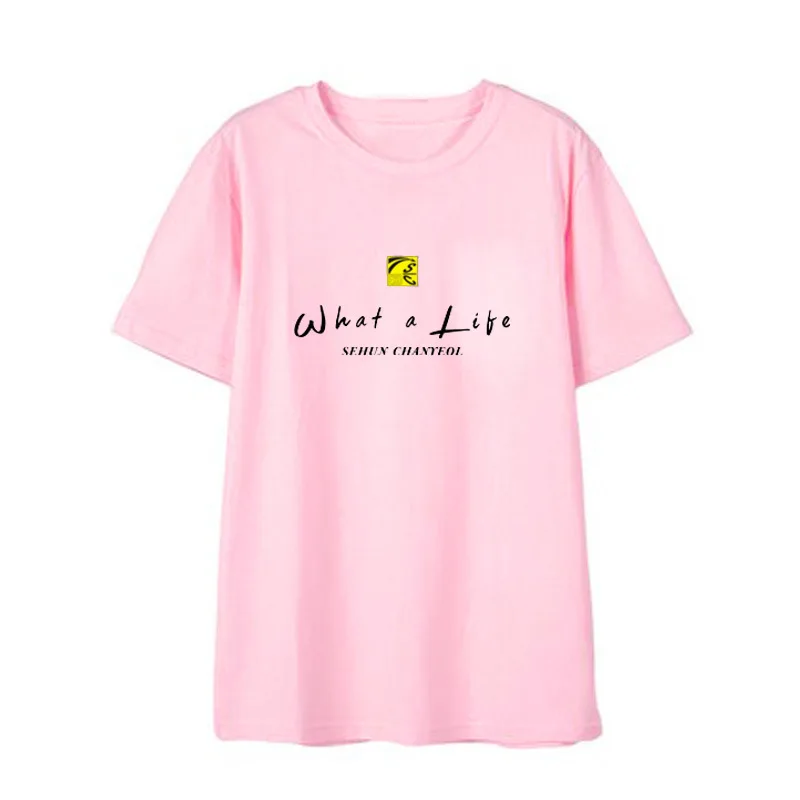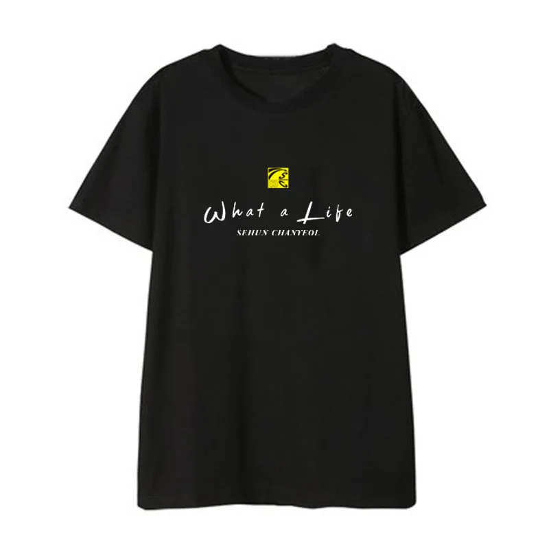 Finest Kpop EXO SC What a Life SEHUN CHANYEOL Album Shirts Hip Hop Casual Loose Clothes Tshirt T Shirt Sho