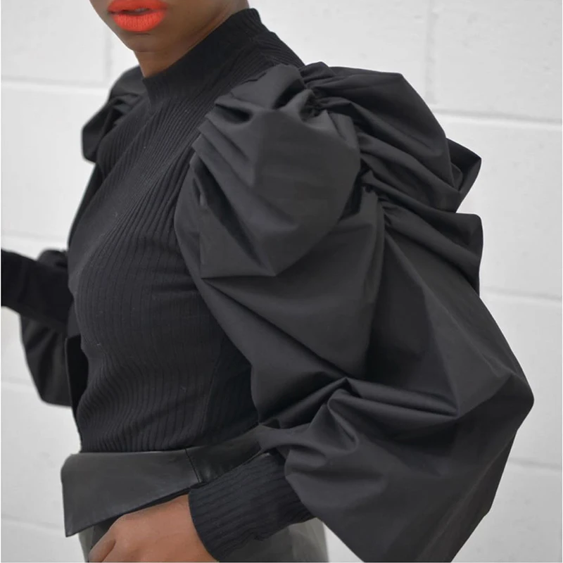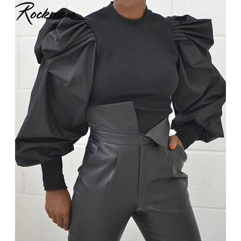 Ideal Rockmore Pleated Puff Long Sleeve Tops Womens T Shirt Harajuku Turtleneck Streetwear Basic Tshirt W
