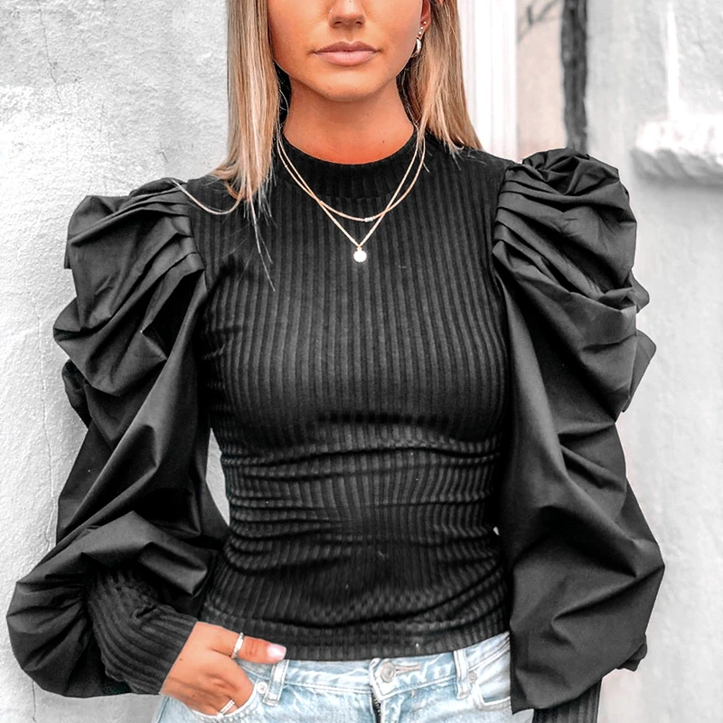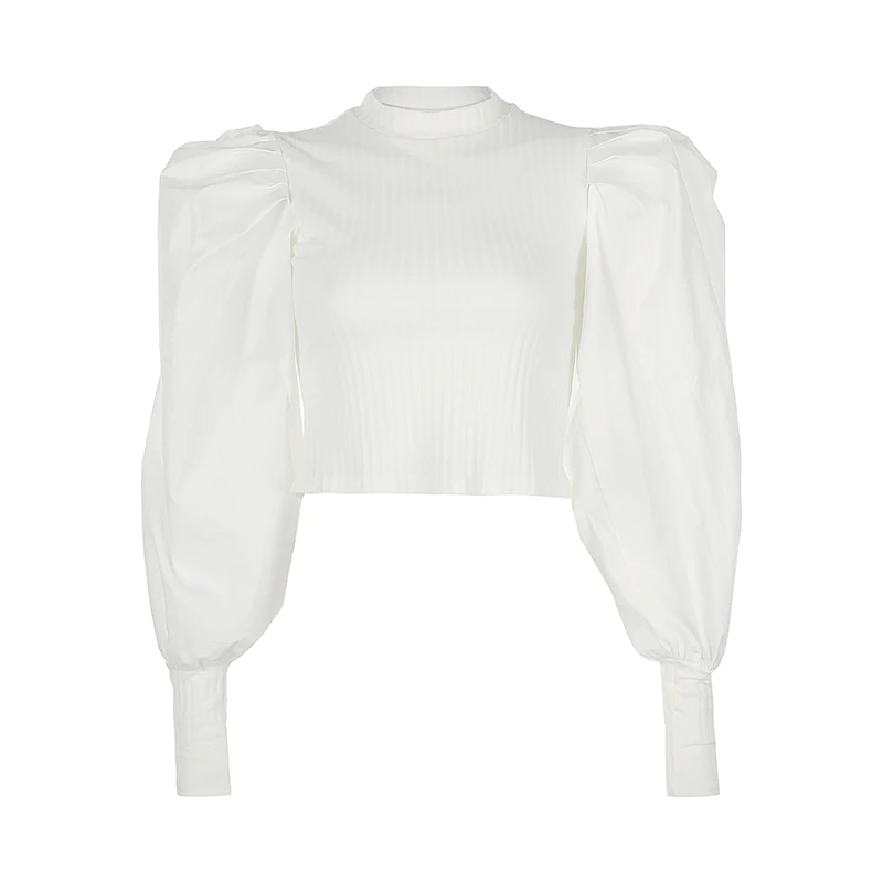 Finest Rockmore Pleated Puff Long Sleeve Tops Womens T Shirt Harajuku Turtleneck Streetwear Basic Tshirt W