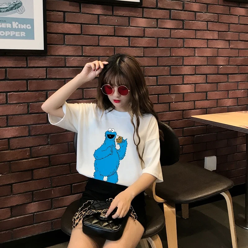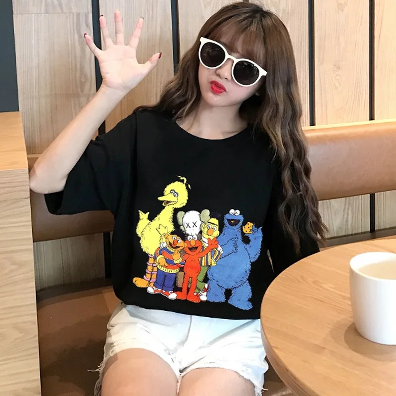 discount Summer casual T Shirt Women Harajuku Short Sleeve Funny Ulzzang T-Shirt korean kawaii Tshirt Cartoo