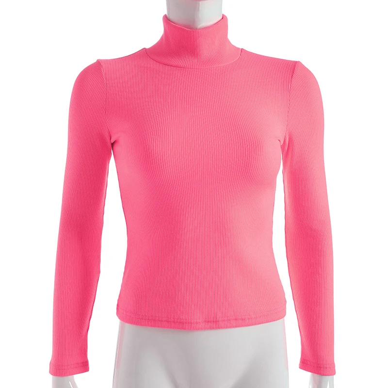 awesome Darlingaga Fashion high neck ribbed female t-shirt long sleeve bright green t shirt women tops tees