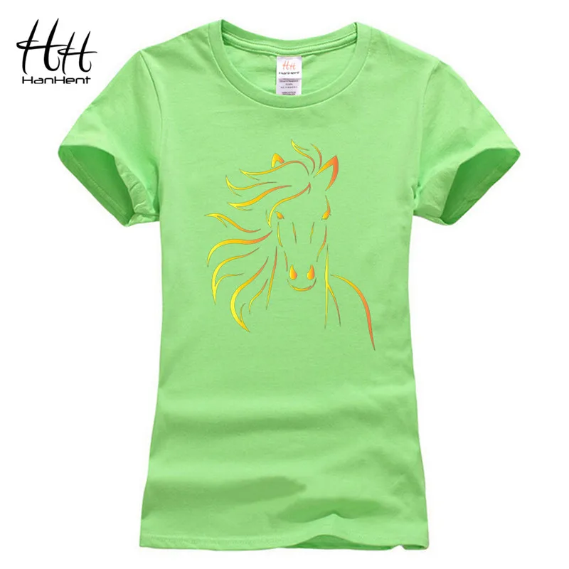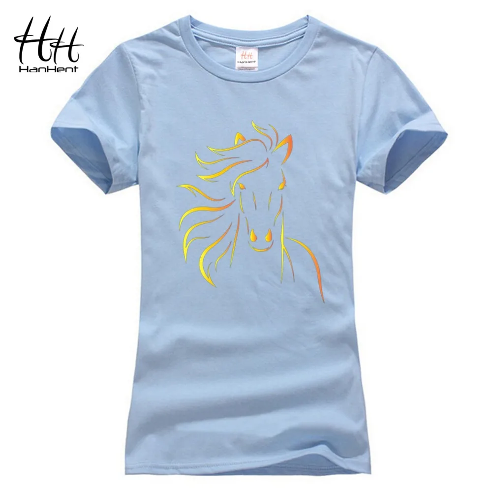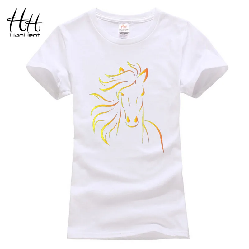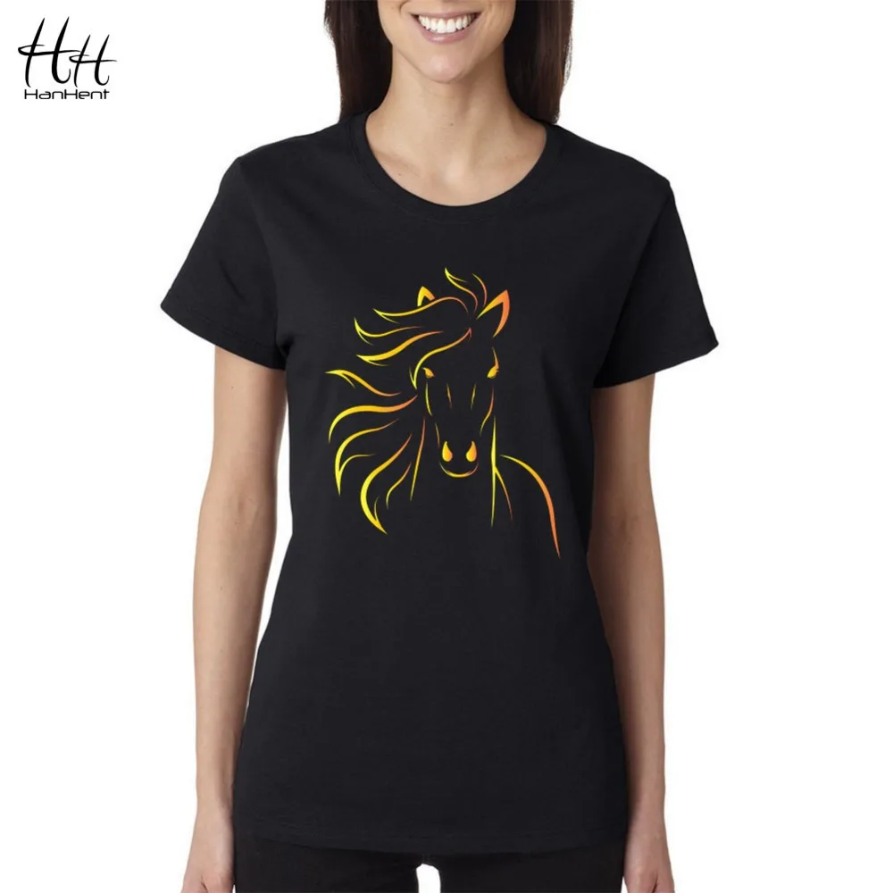 New HanHent Brand Design Print Horse Women T shirts 2018 New Fashion Summer Short Sleeve Tshirt Girls S