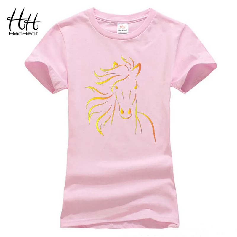 Ideal HanHent Brand Design Print Horse Women T shirts 2018 New Fashion Summer Short Sleeve Tshirt Girls S