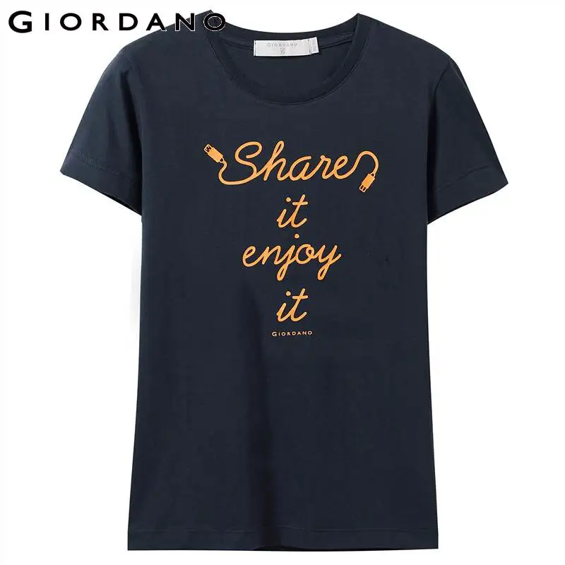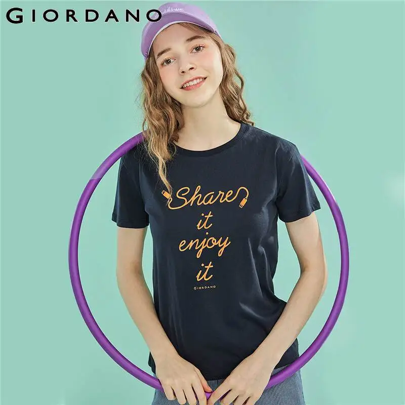 price reduction Giordano Women T-shirt Women Comfortable Smooth 100% Cotton Tshirt Women Printed Letter Graphics Yo