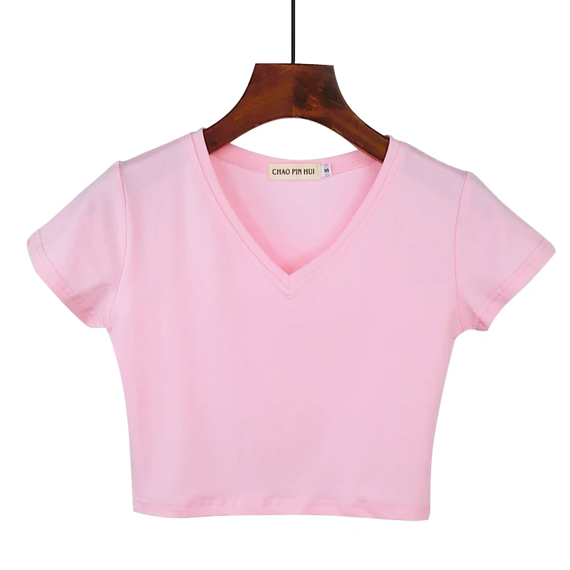 Very best 2019 New Sexy Women Summer Short Design V-neck Cotton T Shirt Female Slim High Waist Crop Top Basic
